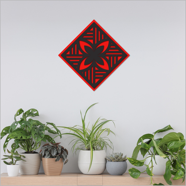 A contemporary take on traditional Tapa-inspired design, this artwork is crafted with a layered finish of matte black acrylic over ACM for a striking two-tone effect. Versatile and stylish, it can be hung in two orientations—either as a square or a rhombus—to suit your space.