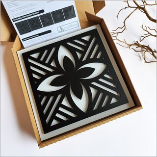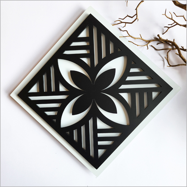 A contemporary take on traditional Tapa-inspired design, this artwork is crafted with a layered finish of matte black acrylic over ACM for a striking two-tone effect. Versatile and stylish, it can be hung in two orientations—either as a square or a rhombus—to suit your space.