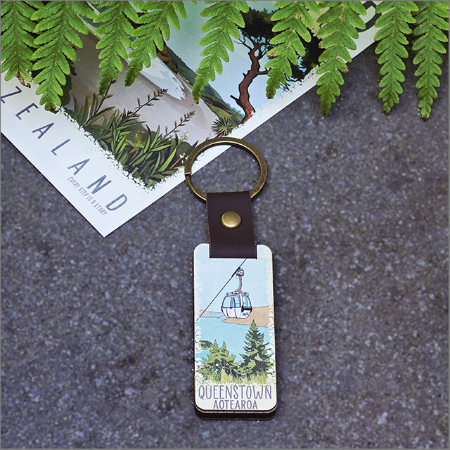 Bamboo Keyring Printed: Queenstown (gondola) (krpqt)Keyrings + Keychains