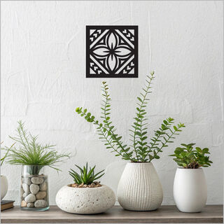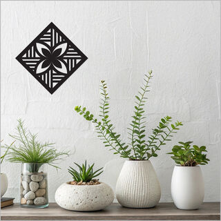 A contemporary take on traditional Tapa-inspired design, this artwork is crafted with matte black acrylic. Versatile and stylish, it can be hung in two orientations—either as a square or a rhombus—to suit your space.