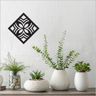 A contemporary take on traditional Tapa-inspired design, this artwork is crafted with matte black acrylic. Versatile and stylish, it can be hung in two orientations—either as a square or a rhombus—to suit your space.
