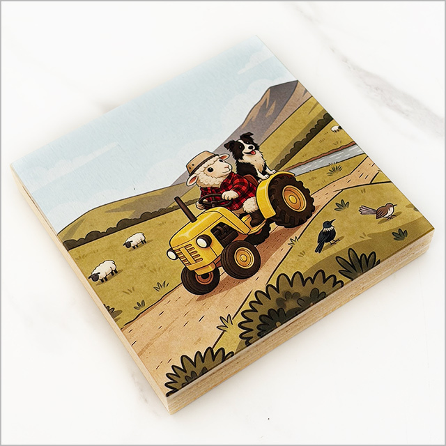 Plywood Art Block: Printed Sheep + Tractor